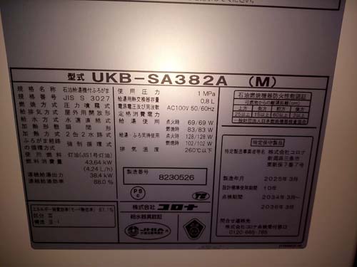 四万十市松原町 コロナ給湯器UKB-A4000HTX→コロナ石油給湯機付ふろがまUKB-SA382A(M) 給湯器交換工事