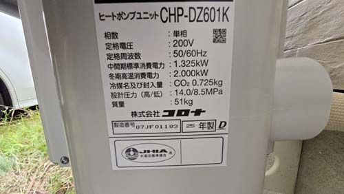 須崎市若葉町 コロナ自然冷媒CO2家庭用ヒートポンプ給湯機 ヒートポンプユニットCHP-DZ601K、貯湯ユニットCTU-46AZ1K エコキュート交換工事