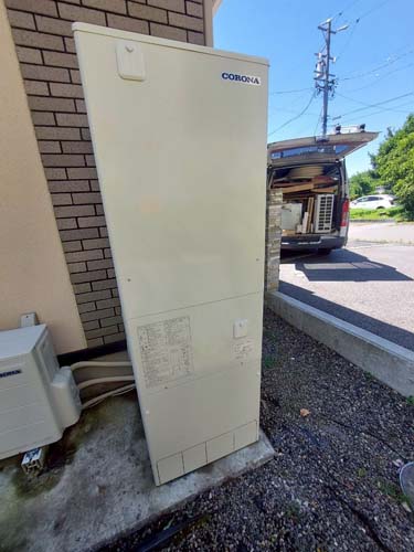 土佐市旭町 長府製作所エコキュート→コロナ自然冷媒CO2家庭用ヒートポンプ給湯機 ヒートポンプユニットCHP-DZ451K エコキュート交換工事