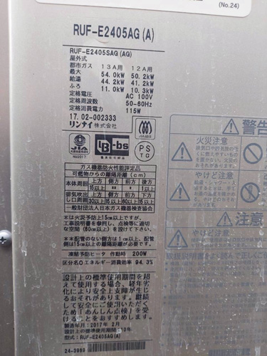 いの町桑瀬 リンナイ給湯器RUF-E2405AG(A)→ノーリツ給湯器GT-2470AW 給湯器交換工事